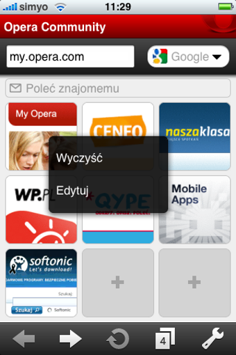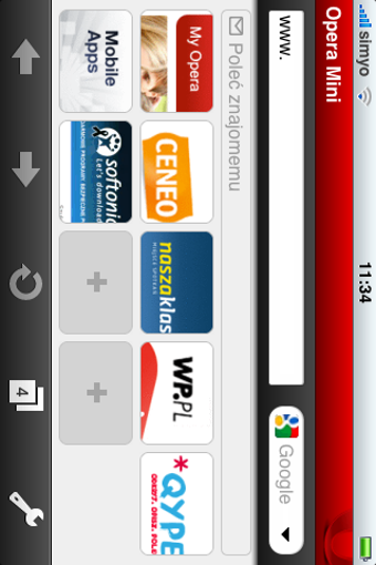 Ponadto, Opera Mini naprawdę ułatwia poruszanie się po internecie. Dostępna jest, na przykład opcja szybkiego wybierania strony startowej, gdzie możesz zaprogramować 9 ulubionych stron i ładować je za pomocą jednego dotknięcia. Dodatkowo, aplikacja posiada łatwe w użyciu narzędzie do poruszania się między otwartymi kartami.