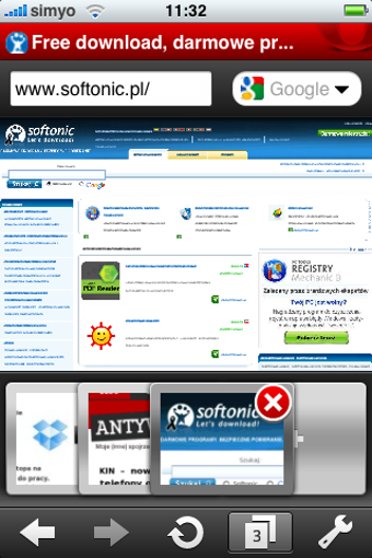 Kiedy klikniesz na ikonę Tabs (karty), pojawi się panel z miniaturami otwartych aktualnie stron. Wystarczy wybrać i dotknąć którąś z nich, aby natychmiast do niej przejść. W przeciwieństwie do Safari, Opera Mini nie ładuje ponowanie każdej strony, do której wracasz. Ponadto, przeglądarka ta ma możliwość otwierania linków jako osobnych kart.